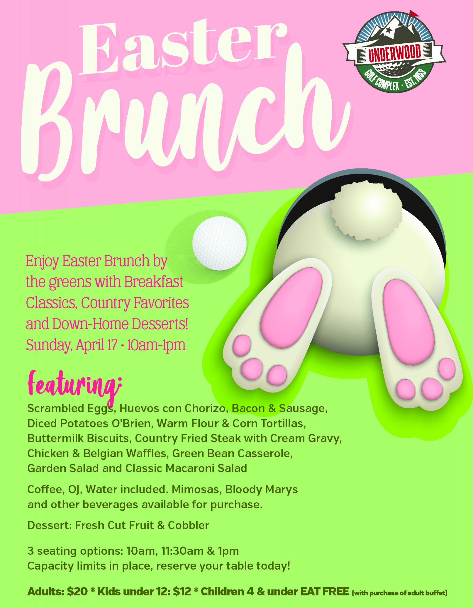 Enjoy Easter Brunch by the greens with Breakfast Classics, Country Favorites and Down-Home Desserts!