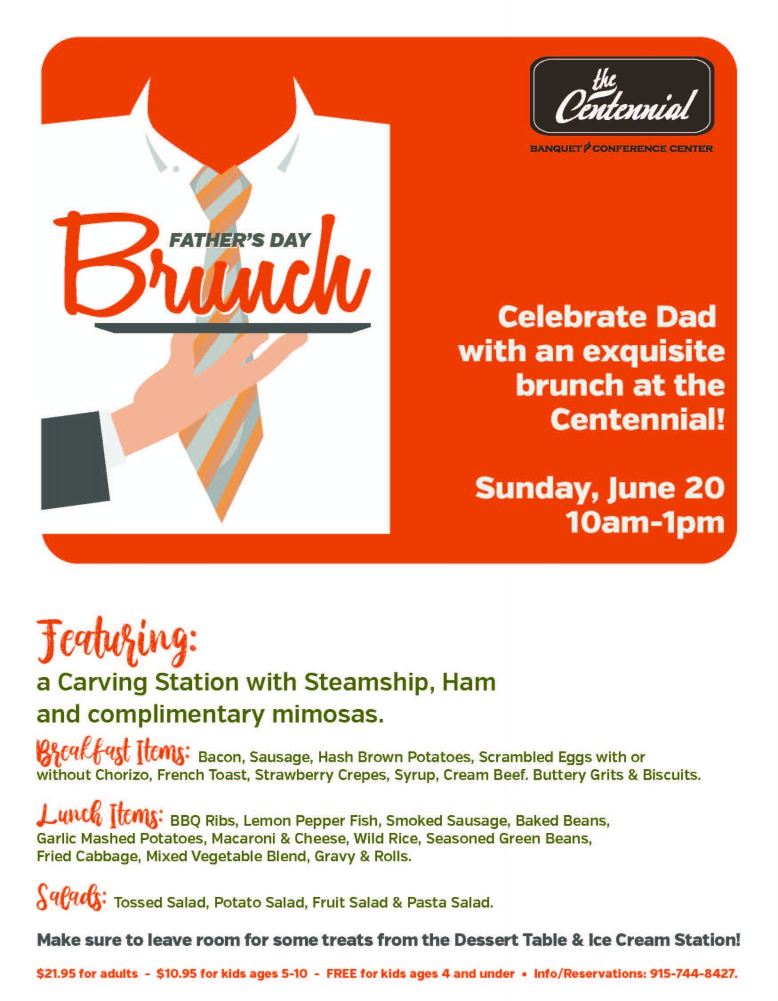 Show your Dad how much he means to you by taking him to a marvelous Father's Day Brunch at the Centennial!