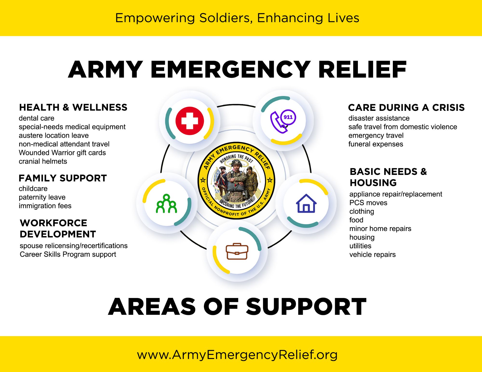 Army Emergency Relief is the U.S. Army's own nonprofit organization dedicated to alleviating financial distress on the force. AER provides grants and zero-interest loans to Active Duty and Retired Soldiers and their Families. Over 4 million Soldiers supported since 1942. AER officers are conveniently located at installations around the world. Visit ArmyEmergencyRelief.org to learn more.