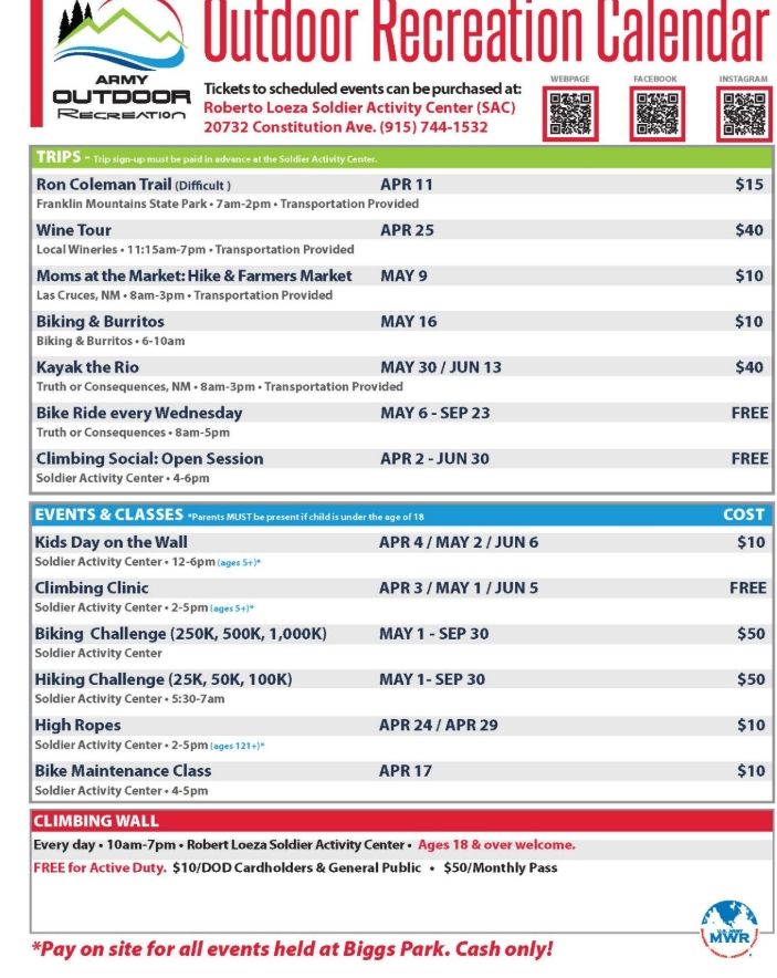 Fort Bliss Outdoor Recreation provides several high and low intensity activities which offer Soldiers, veterans, friends and family the chance to get out and explore, meet new people, learn new skills, challenge themselves and relax.